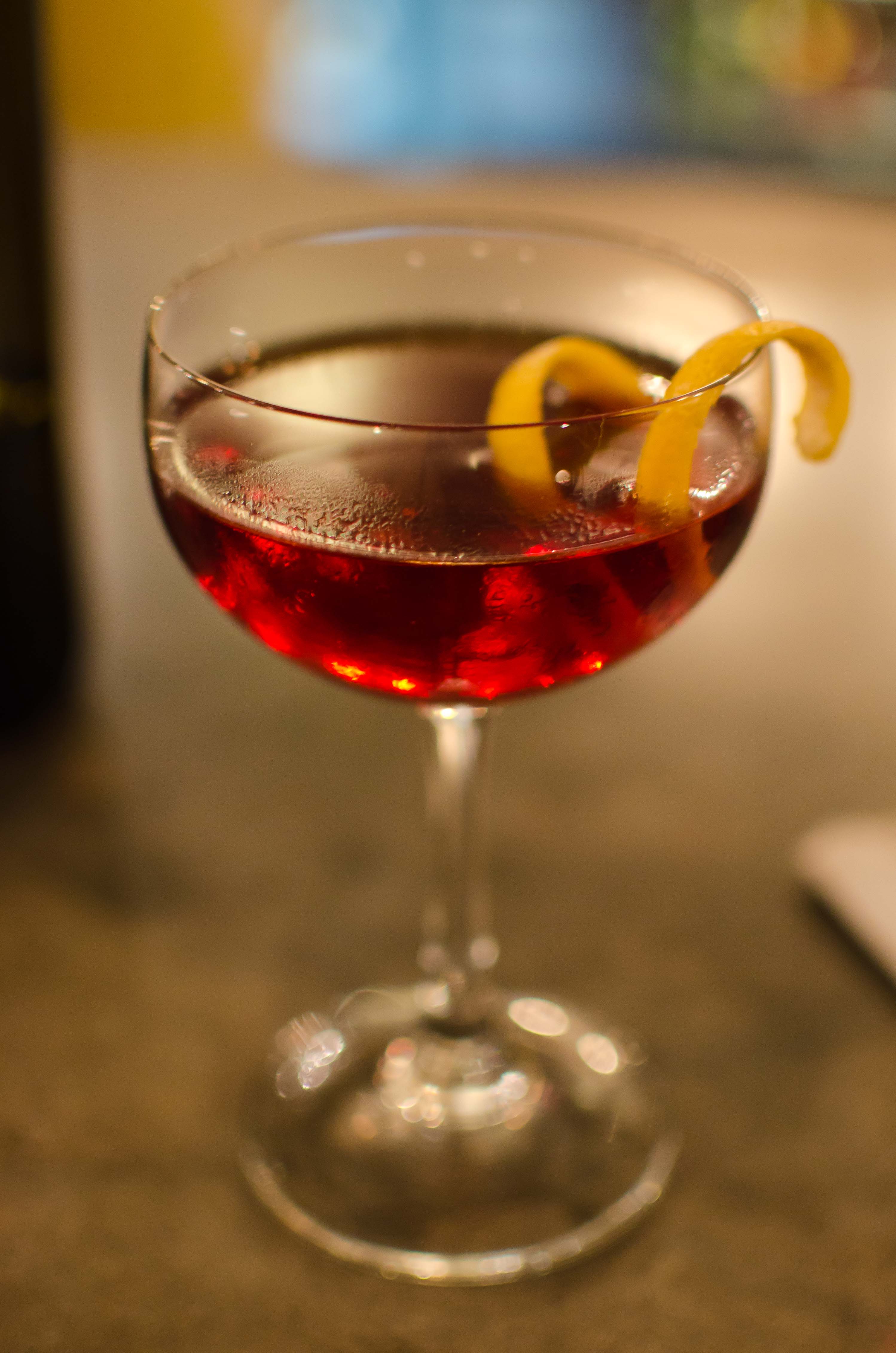 Orange Bitters (House-made)Stir with ice and strain into a chilled coupe. Garnish with an orange peel, flamed, if you wish.