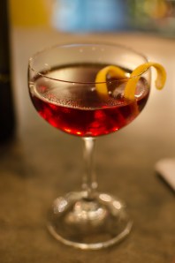 According to Robert Hess’s Essential Bartender’s Guide, the Old Hickory was the supposed favorite drink of Andrew Jackson around the time of the Battle of New Orleans (1814-1815). I’ve made this one before, though with Noilly Prat Original Dry and M&R Rosso, and my version certainly didn’t compare. This was my first encounter with Carpano Antica (another “first!” It was becoming a trend!), and I can’t say I’m displeased; I fell in love with the Dolin Blanc earlier at JCT. Perhaps a bit heavy on bitters, overall, but I intended it to be the final drink, and sweetened bitters make an excellent nightcap (try Fernet-Branca or Killepitsch sometime).