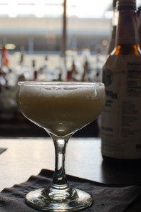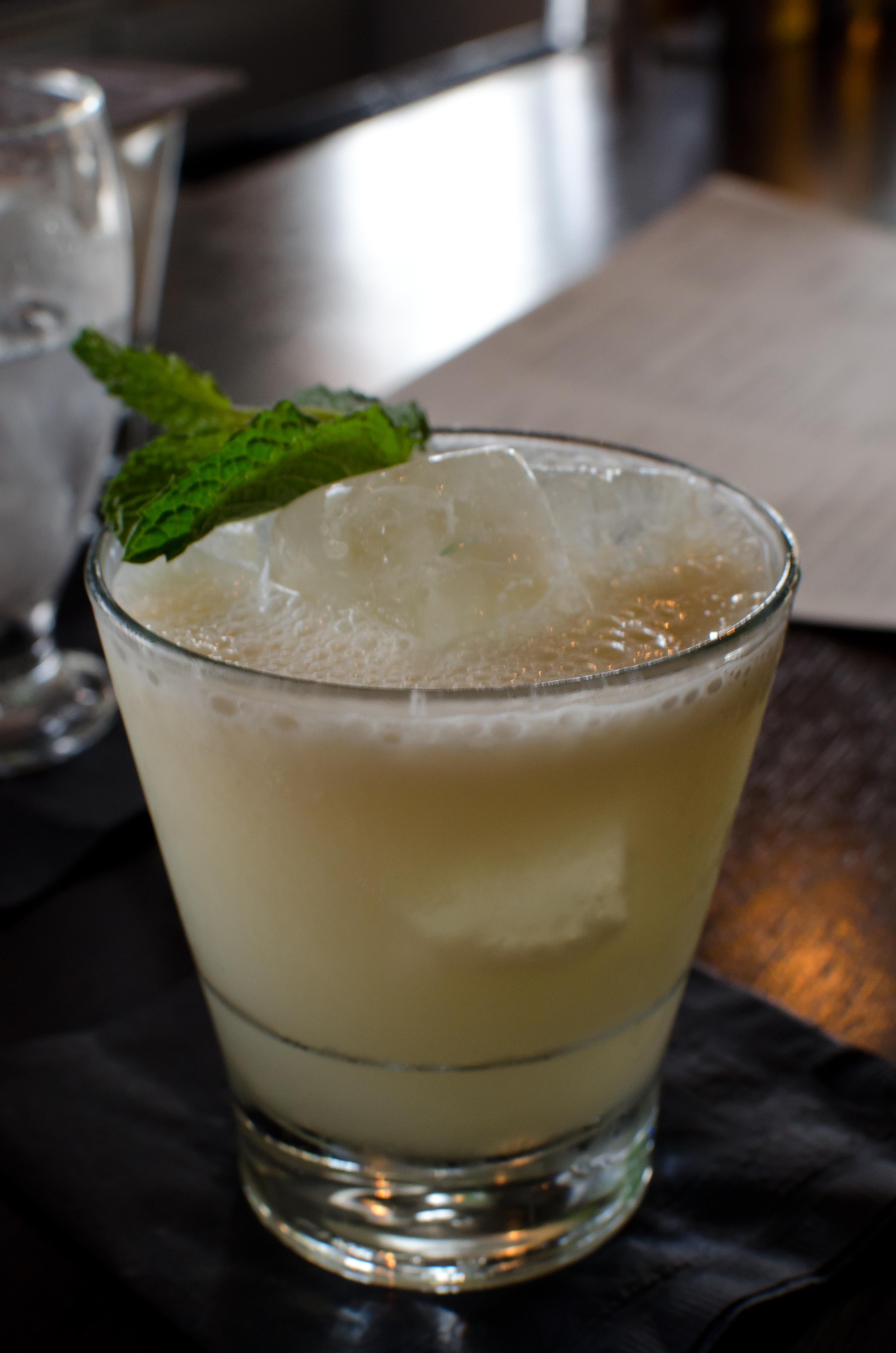 Very good. Death’s Door is a floral, American-style gin, distilled here in Madison by Yahara Bay using grain from Washington Island, Wisconsin. Combined with the Pimm’s, Menthe, and Lemon Juice, it makes for a light, refreshingly herbal drink, accented by the Bittercube Jamaican, which is redolent of allspice and a nice companion for the ginger beer. Gosling’s is a relatively smooth ginger beer, not nearly as bitey as something like Fentinman’s, but good. The Chartreuse makes up for the Gosling’s lack of bite, I think.