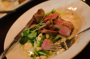 Well, it’s a flip! It always amazes me how cream and eggs, or perhaps the nutmeg, seem to bring out the chocolate notes in brandy and cognac (Chalfonte, in particular). Enjoyable, this served as an appetizer to keep me going until dinner later that night; leg of lamb for me, the cheese platter for Dad, most enjoyable after the concert.