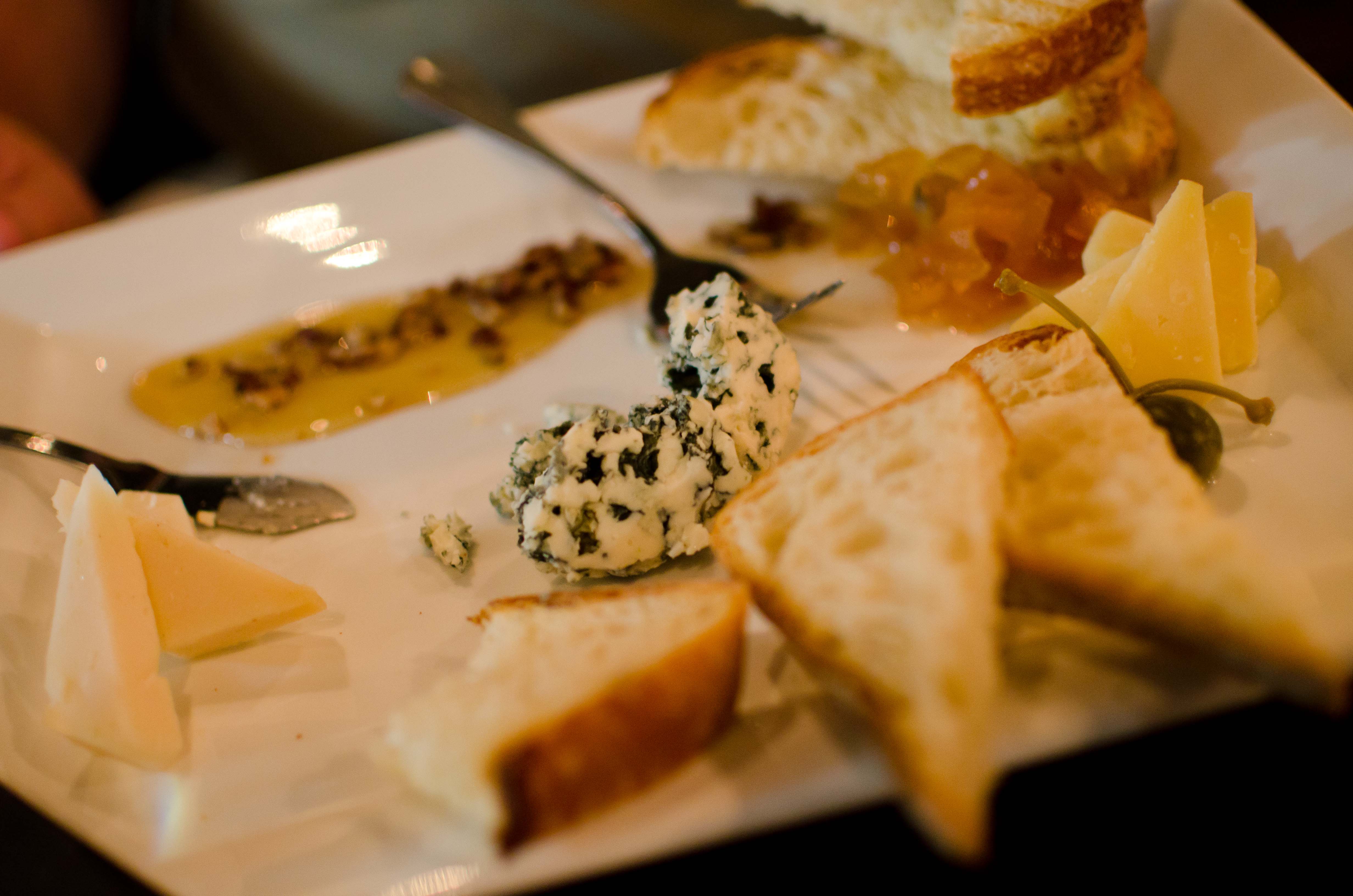 Local Cheese Plate featuring Bleu Cheese, Smoked Cheddar, Honey, and Artisan Bread