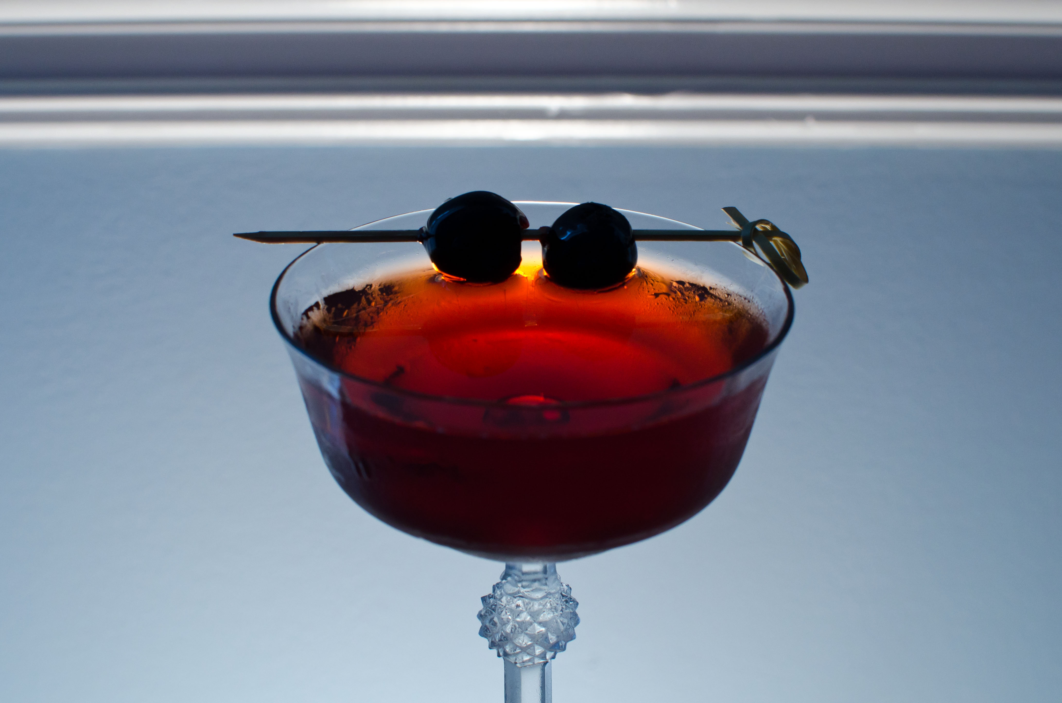 Given the bitter, herbal firepower of the Campari, you’ll need a spicy bourbon for this drink: something like Buffalo Trace, Four Roses, or Russell’s Reserve, as Jason Wilson recommends. In Vintage Spirits & Forgotten Cocktails, Ted Haigh notes that the Boulevardier is one drink which greatly benefits from the use of Carpano Antica, and I have to agree — its strong, slightly bitter flavor meshes well with bourbon and Campari. Another sweet vermouth, like Martini, might not have enough punch or fruitiness to come through and complete the drink. I like to garnish the Boulvardier with two maraschino cherries — it feels generous and elegant, plus a little bit of the syrup slowly floats off into the glass. Make sure they’re good cherries, either homemade or from Luxardo.