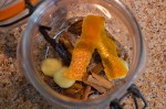 I ended up using half a bottle this time around so that I’d have some rum left to compare the spiced version to. The recipe was halved with the exception of the cinnamon and vanilla. What a difference! I think I prefer this rum to Appleton Extra, as far as spicing goes. The cinnamon dominates in this version…in fact, I think I’d cut it back in the future. It was strong enough that I added a second vanilla bean after filtering the rum the first time around, and I think that it rounded off the flavor enough to yield just the right amount of spice. The allspice and cloves were also reduced slightly. The recipe follows (though it does not differ significantly from Paul Clarke’s):