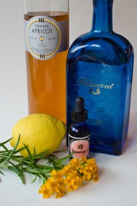 Mexican tarragon, of all things, finally seemed to fit the bill. Tarragon has an anise-like flavor and blooms in the Fall: it lent a nice bit of complexity to the gin-apricot-lemon combination I had going. Like most things anise- and mint-flavored, it has a bit of a cooling effect (probably from the oils). I should also note that Mexican tarragon has a stronger flavor and larger leaves than French tarragon, so you’ll have to use more leaves if using the latter.