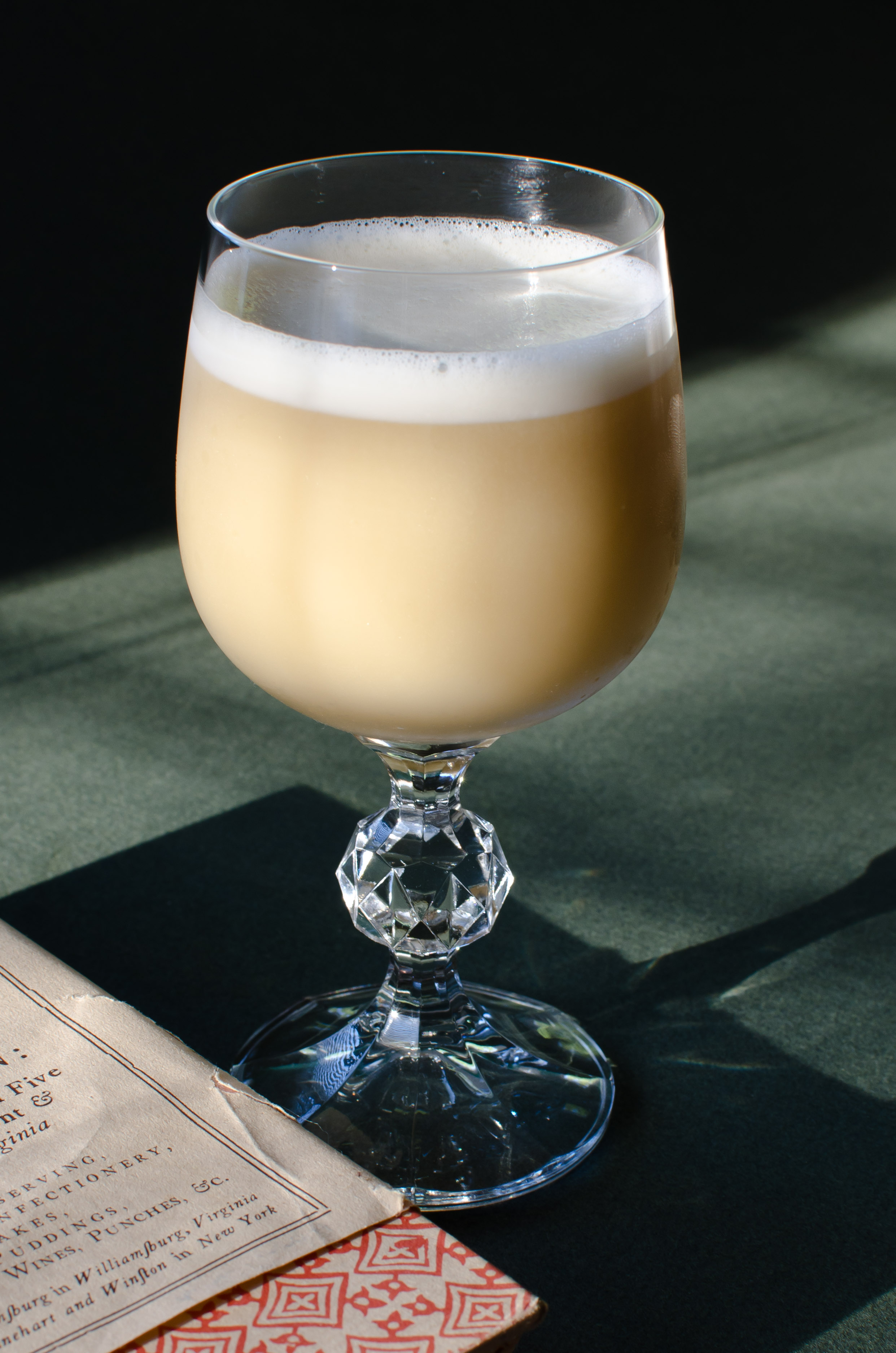 Nutmeg, for garnishCombine all ingredients without ice and dry shake, then add ice and shake. Strain into a cocktail glass or small wine glass, then grate some nutmeg over the drink.