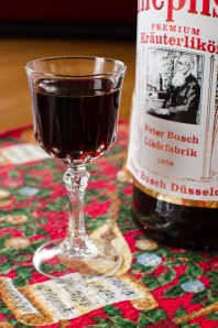 The finale will be a cordial glass of Killepitsch Kräuterlikör, which I think is a great, intense, herbal digestif. I suppose it’s similar to Jägermeister, though I’ve yet to compare the two side-by-side. I’ll spare our guests from tasting the Fernet-Branca, Cynar, or Campari…this time. A nice alternative might be some of that homemade spiced rum I have sitting around.