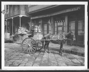 In front of the Restaurant à la Louisiane, circa 1903. I hope he’s transporting booze!