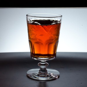 It’s crisp and cold, like a martini, but with just a hint of maraschino and absinthe to ramp up the spice while a dose of Lillet files off the edges a bit. The Turf War comes across as a great aquavit delivery vehicle…you’ll enjoy it if you like caraway, the primary flavor in Linie (use Aalborg or Krogstad aquavit for more anise notes). The Olive doesn’t contribute much in the way of liquid flavor, but it is a nice accompaniment to the drink (I don’t especially care for them, to tell the truth); the oils of the lemon peel certainly help provide some depth and citrusy zing.