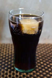 As Greg Best has said, Coke and amaro have a natural affinity for each other — in many ways, our sodas have a similar profile to Italian amaro, but we’ve removed bitterness from the equation. In the Southern Cola, that bitterness is added back in (don’t worry, it’s nothing like Campari), balancing out a bit of the sweetness from the Coke. CioCiaro is very nice, and one of my favorite amari in terms of flavor — not quite as harsh as Fernet Branca or as sweet and funkily floral as Meletti, colored with earthy, herbal flavors. Oh, and that lime ice cube? It melts as you sip, adding more and more tartness as you go along. Drinking speed will determine how much lime your taste buds receive. Coca-Cola made with corn syrup will work here, but I find it to be sharper and stickier than that which is made the old-fashioned way, with cane sugar. I regularly buy Mexican Coke by the half-liter at the local Super H-Mart.