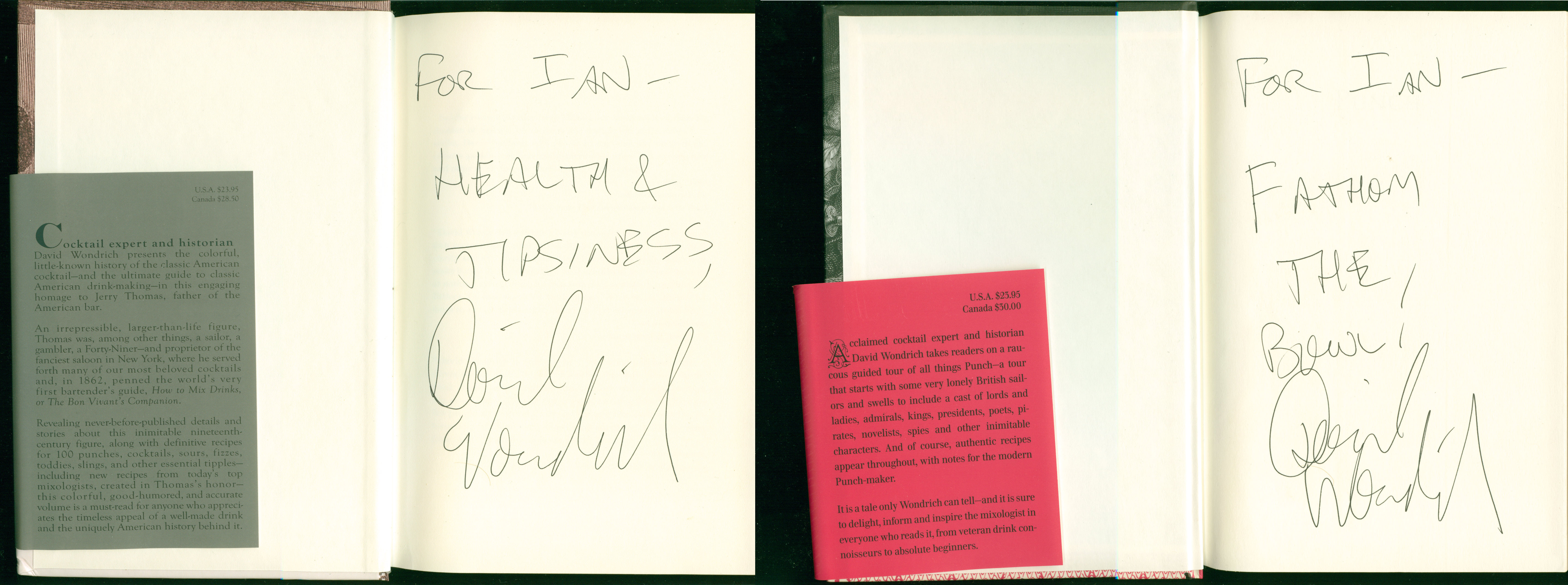 Well, I met David Wondrich last Thursday. Yes, I could heap applause and accolades upon him, but that’s been done enough already. I’ll just say that Mr. Wondrich was an affable, approachable guy who loves his cocktails, and that all of us who attended the book signing — a surprisingly low half-dozen or so — thanked him for his work and wished him well. A few of the more vocal enthusiasts went on to trade some spirits info with him.