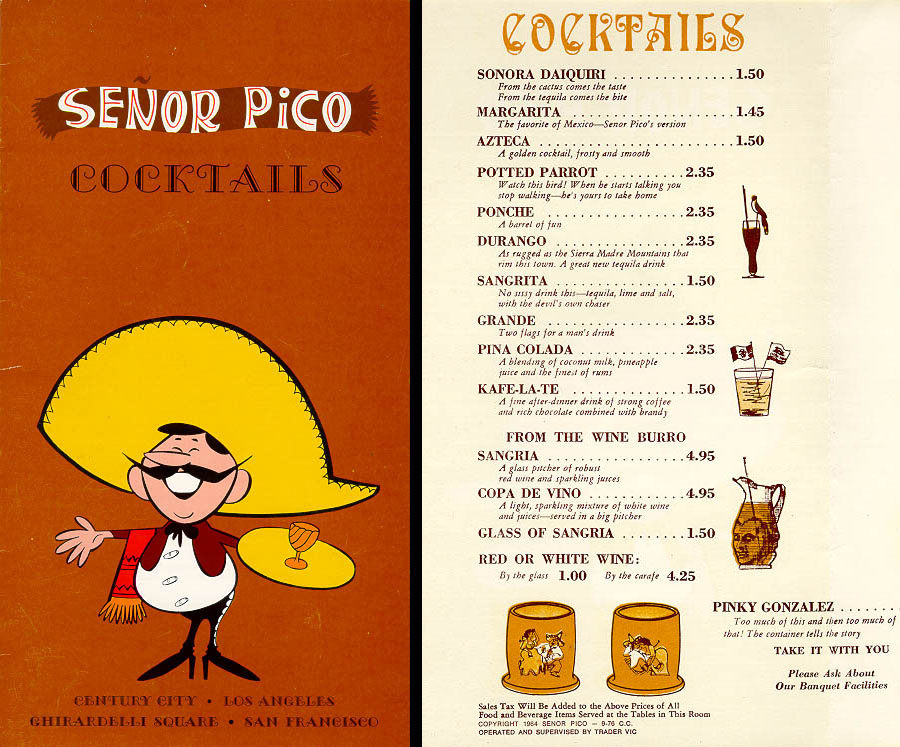 Señor Pico cocktail menu from Eating L.A. The Diablo is missing, however…