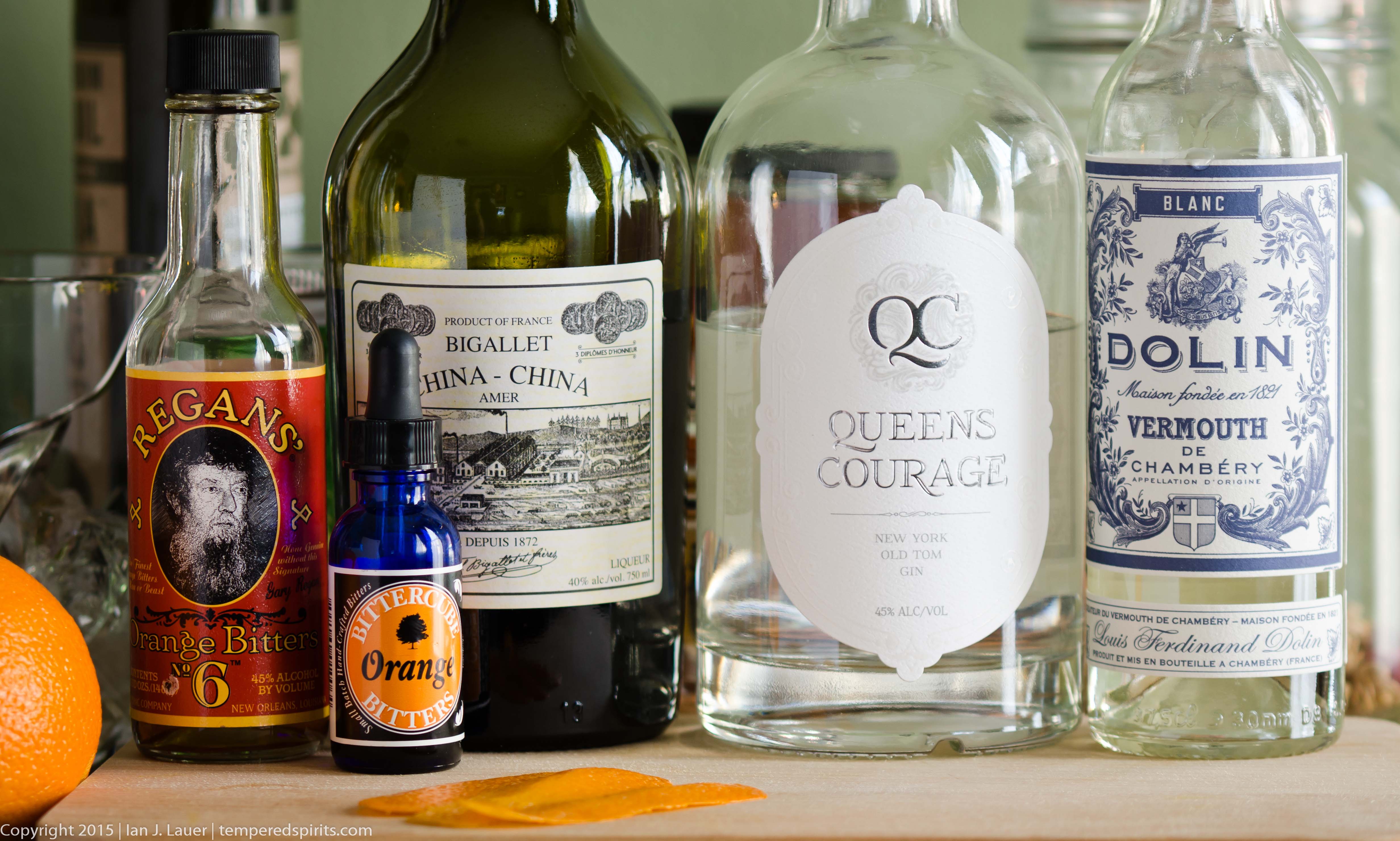 So with the Shanghai, I plugged the standard Dry Martini formula into Jamie Boudreau’s “Golden Ratio” (I know, I use it all the time, but it’s a great starting point) and began making substitutions. Gin? QC is sweetened with honey, with a focus on lemon and black pepper, but retaining a degree of piney sharpness, so I figured it would pair better with an herbal white vermouth, not the drier stuff. The orange bitters were still working well, but it needed more of an orangey punch, so I took a cue from the Brooklyn cocktail and added in the China-China Amer (a phenomenal replacement for Amer Picon). The motive behind the aquavit is explained above.