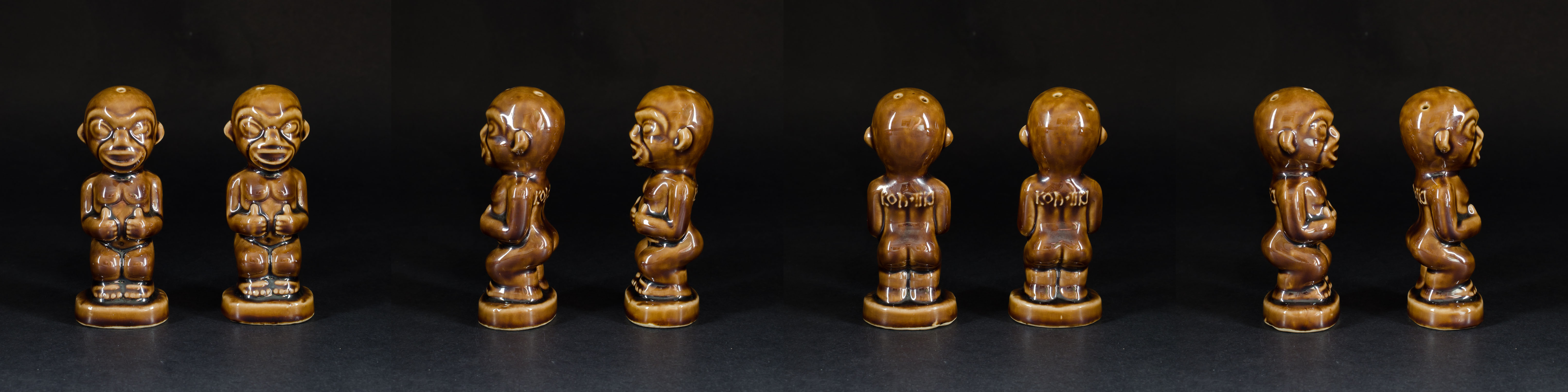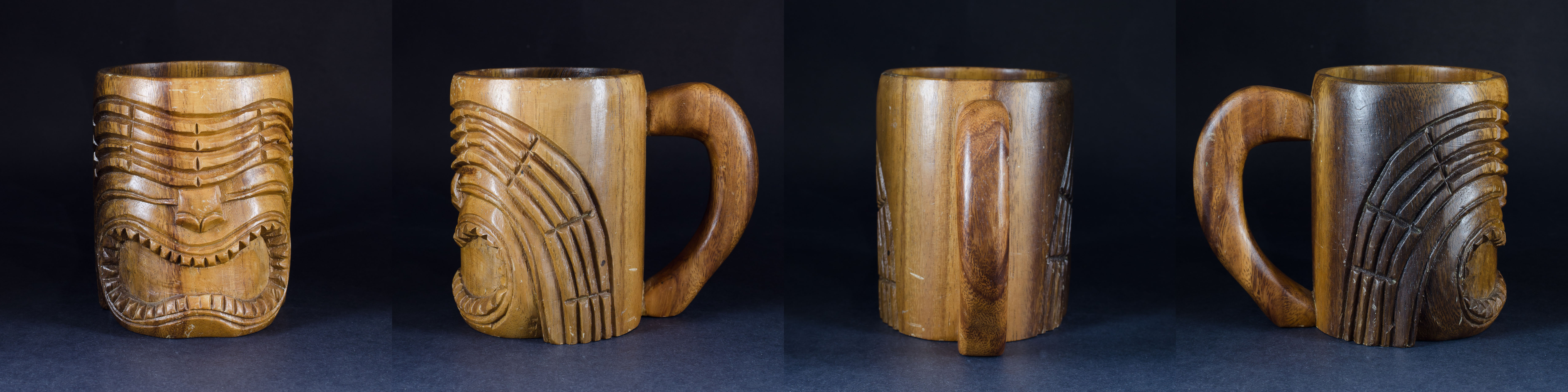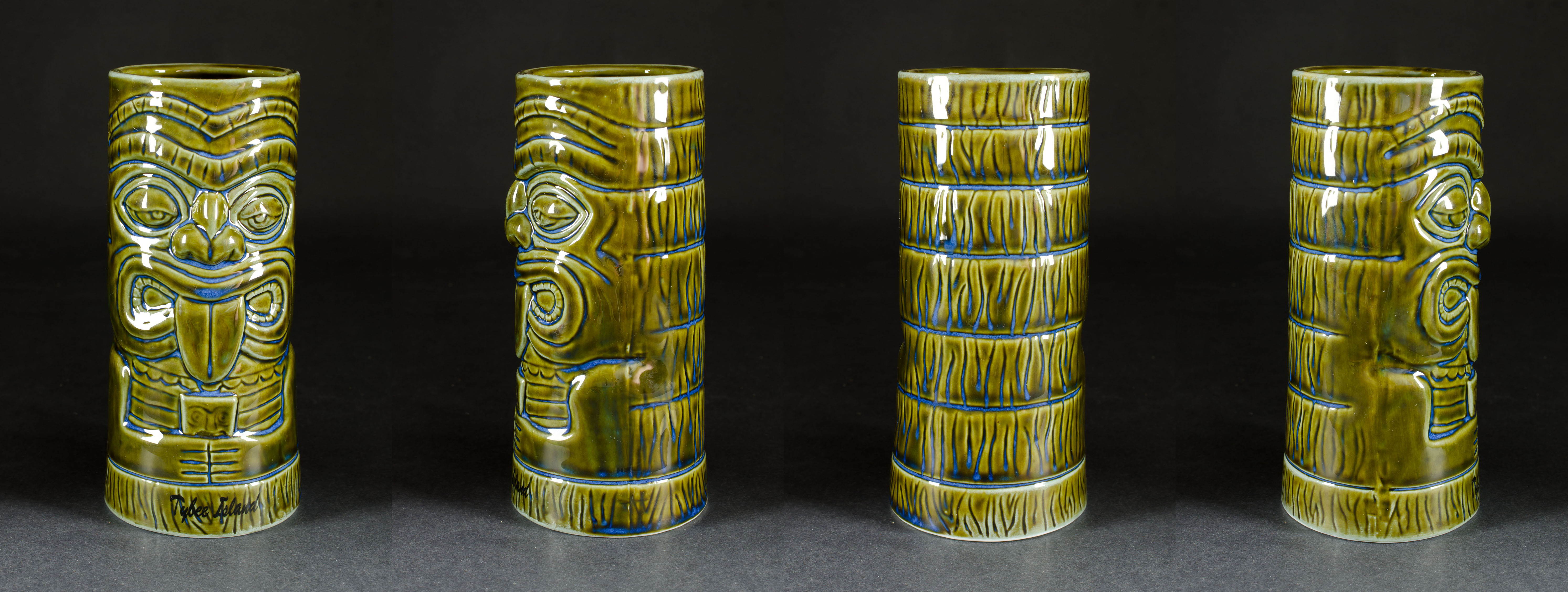 Regarding Tiki Mugs: the Tikis have been photographed from multiple angles (Tiki “Mug Shots,” ha-ha!) to give an idea of their sculptural nature and make identification easier.